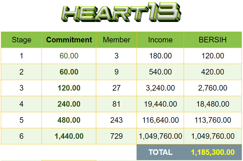 - Setiap ahli diberikan link promosi masing-masing (https://Heart13.net/username)